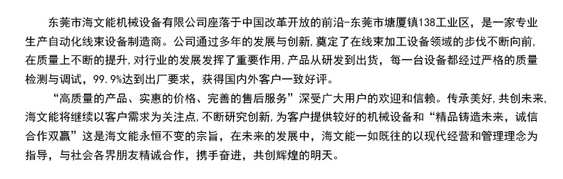 7、全電腦數(shù)控調(diào)試:刀口大小、裁線長度、剝皮長度、沾助焊劑深度、沾錫深度 。